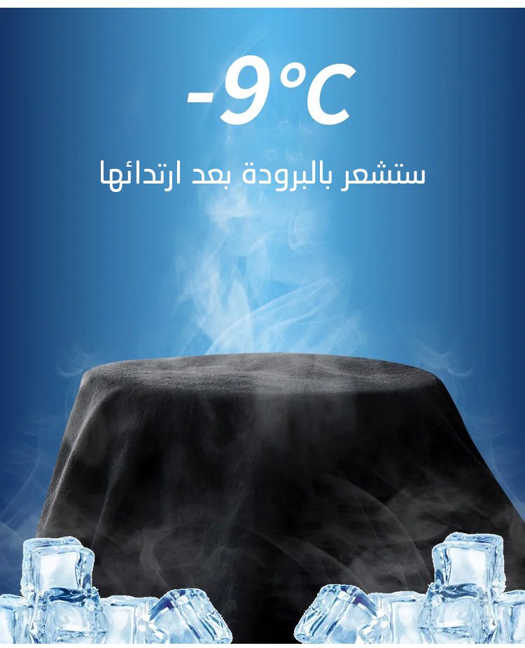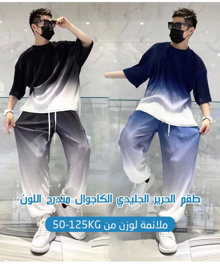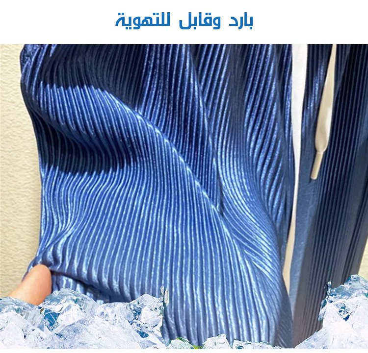 طقم ملابس من الحرير الجليد، وهي تخفض 9 درجات عند ارتدائها, النسيج أملس وناعم وأكثر تهوية, اللون جميل، وهي مريحة وتتماشى مع اطلالات مختلفة